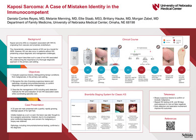 • Kaposi Sarcoma: A Case of Mistaken Identity in the Immunocompetent by Daniela Cortes Reyes, Melanie Menning, Ellie Staab, Brittany Hauke, and Morgan Zabel