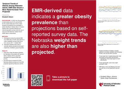 • Temporal Trends of Obesity Among Nebraska Adults: EMR Data Shows a More Rapid Increase Than Projected by Elizabeth Gibson, Jenenne Geske, and Birgit Khandalavala