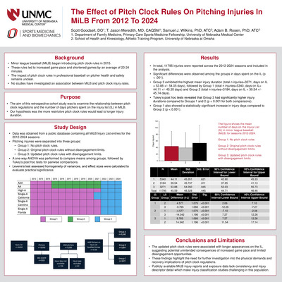• The Effect of Pitch Clock Rules on Pitching Injuries In MiLB From 2012 to 2024 by Scott Goodsell, Jason Meredith, Samuel J. Wilkins, and Adam B. Rosen